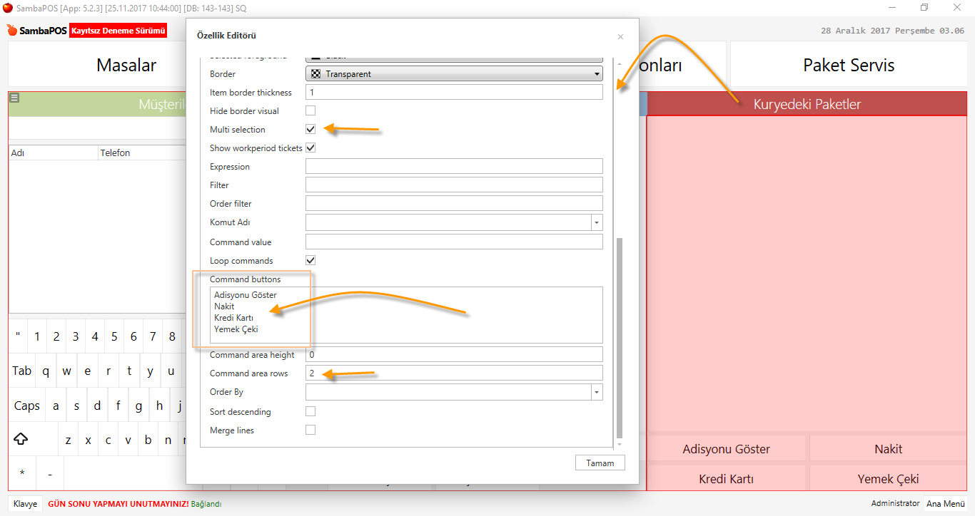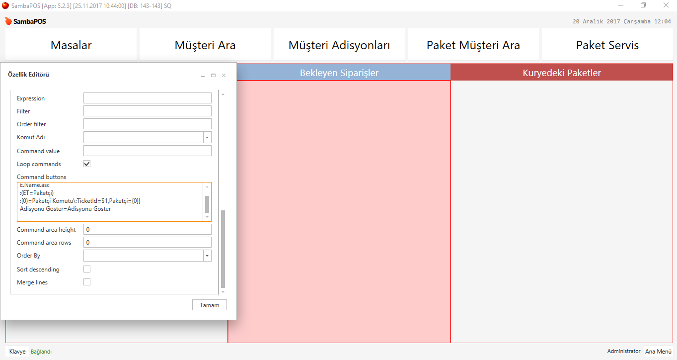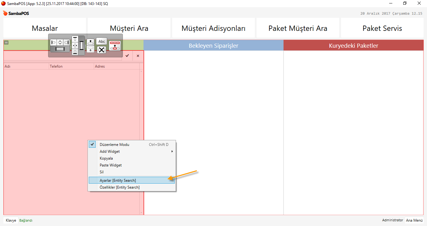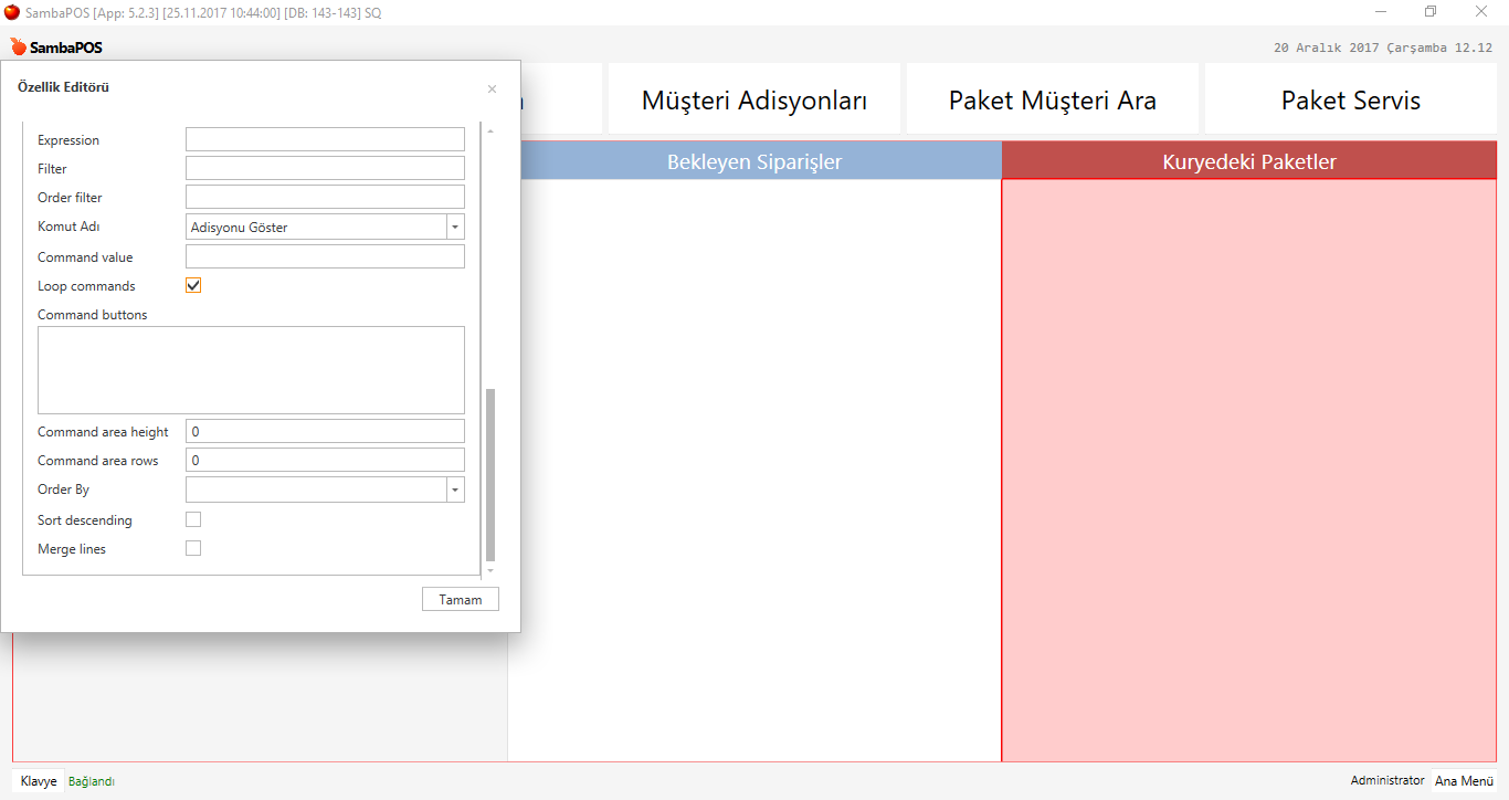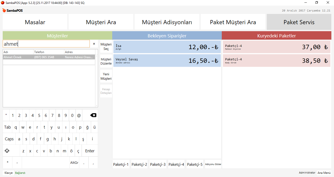 Gelişmiş Paket Servis uygulamasına başlamadan önce SambaPOS veritabanının yedeğini alın.