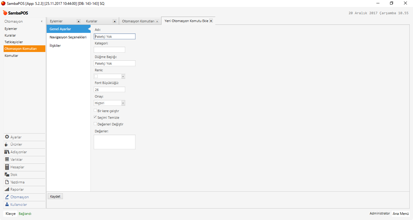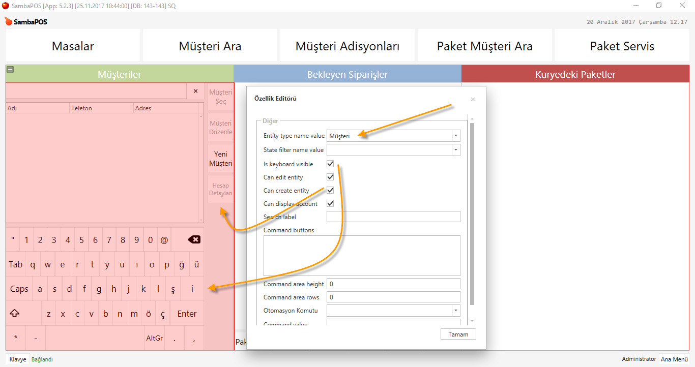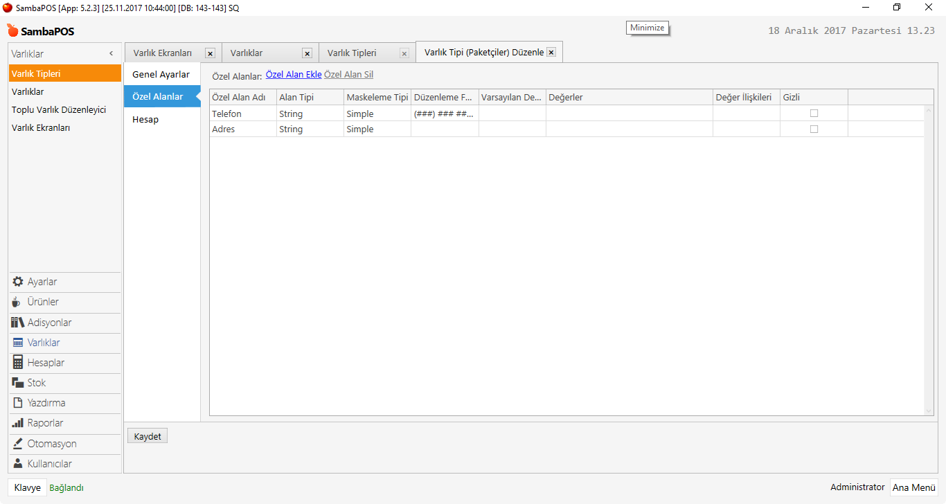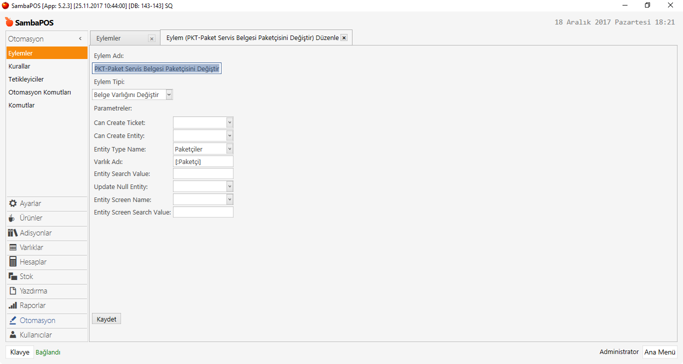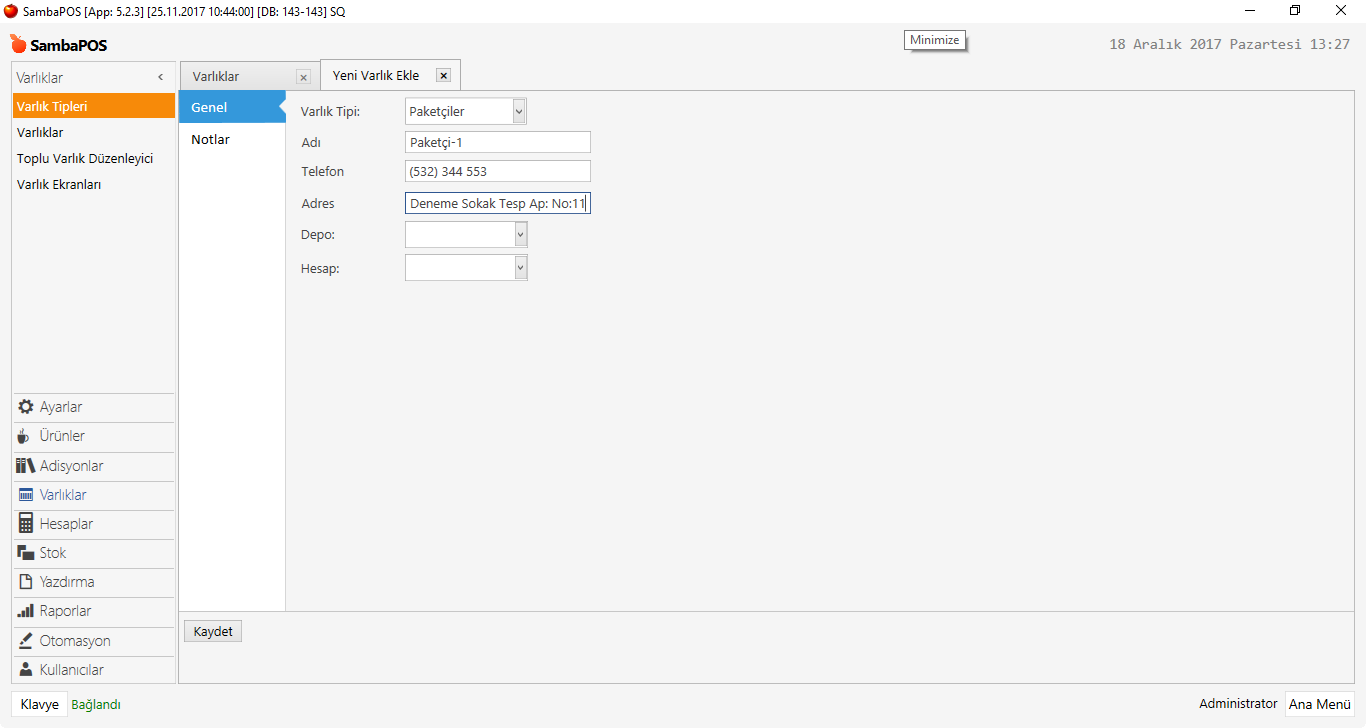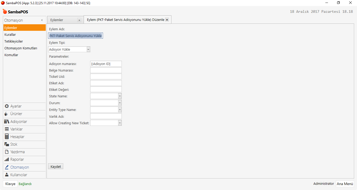 Gelişmiş Paket Servis uygulamasına başlamadan önce SambaPOS veritabanının yedeğini alın.