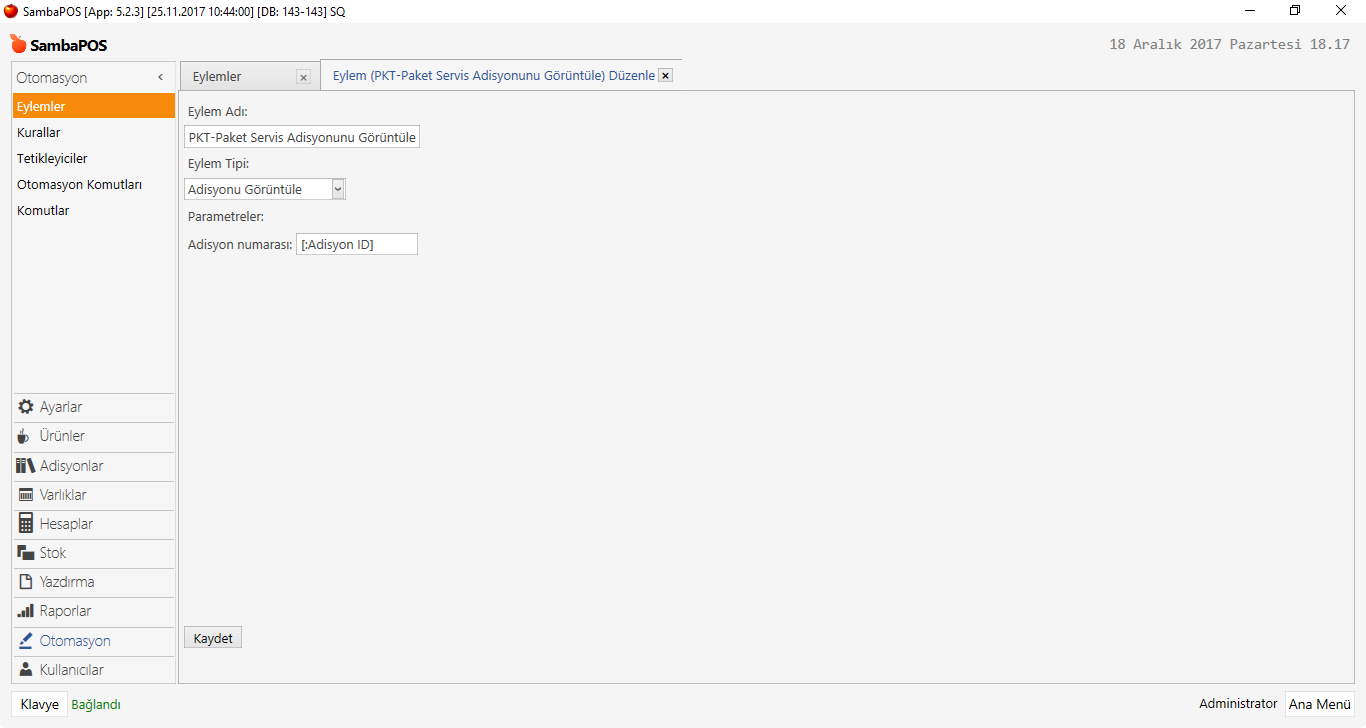 3.2. Eylem: Paket Servis Adisyonunu Görüntüle