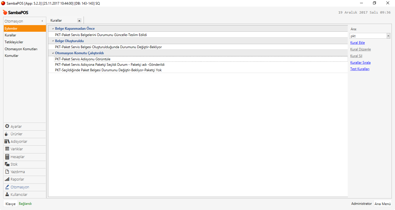 PKT-Paket Adisyonu Durumunu Değiştir Paketçi Yok