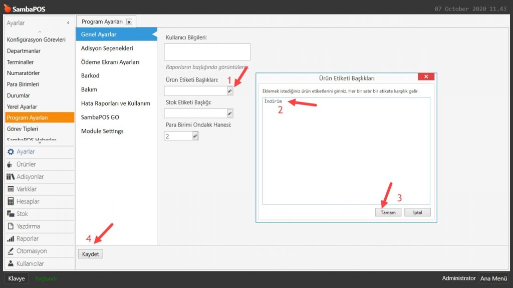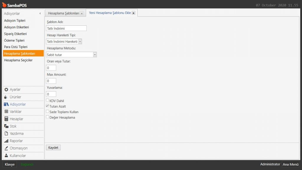 3.3. Tatlı İndirimi Hesabı Ekleme