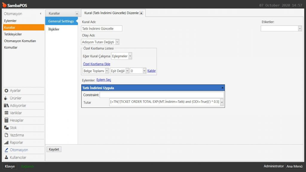 7.3. Tatlı İndirimi Kuralı Ekleme