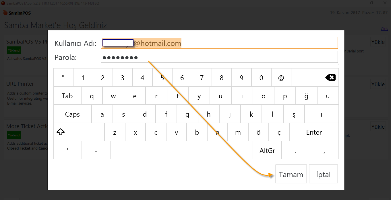 SambaPOS’ta lisans satın alma işlemi tamamlandıktan sonra kullanıcı e-posta adresi ve şifresi 3. kişilerle paylaşılmamalıdır.