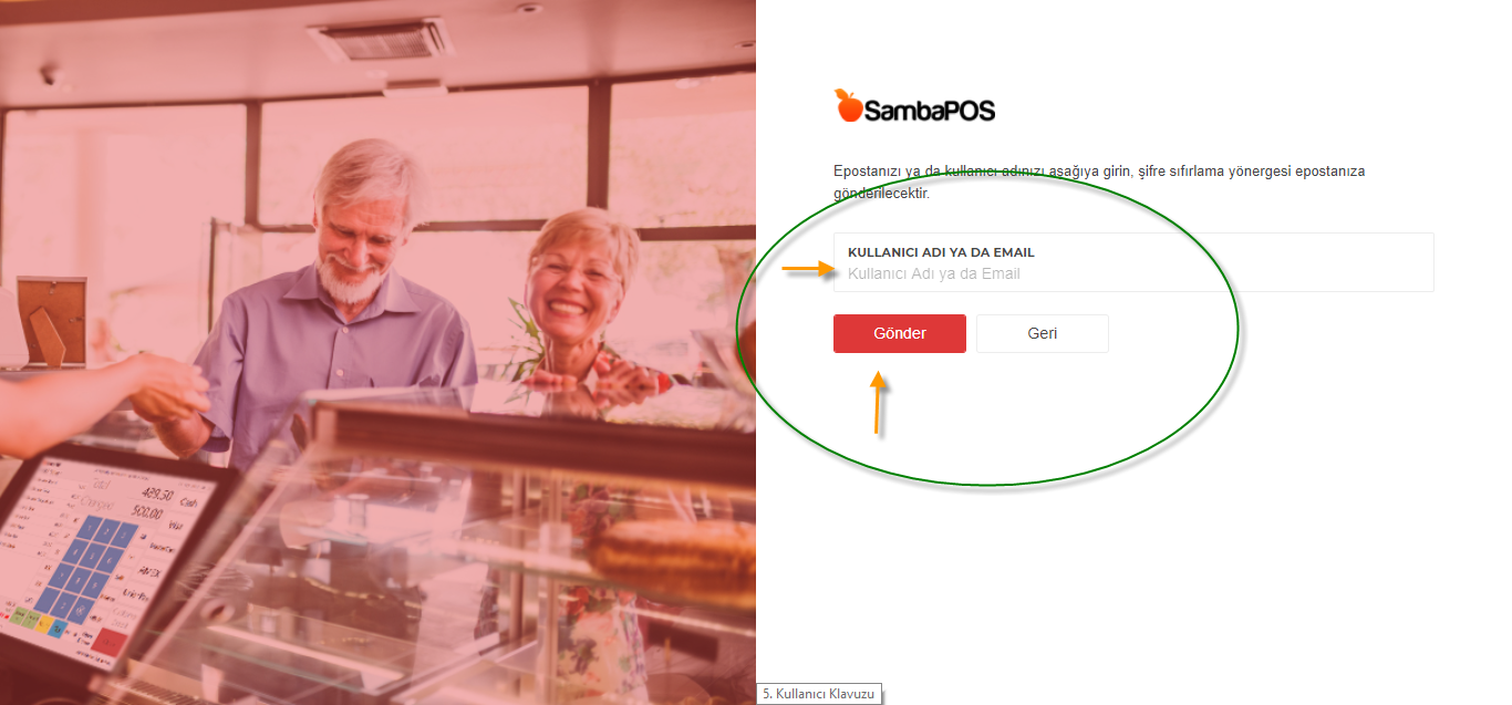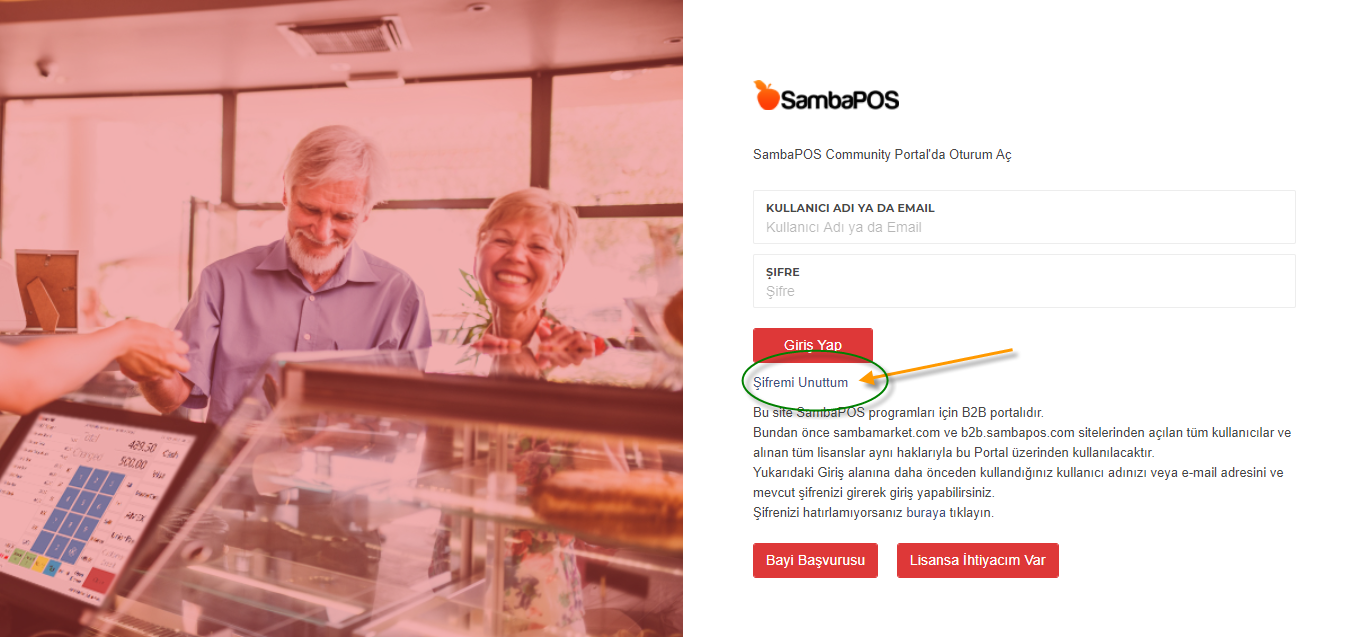 Aktivasyon şifresi kayıtlı olan e-posta adresine gider. Şifre unutulması durumunda cp.sambapos.com kontrol paneline girilerek Şifremi Unuttum linkine tıklanır.